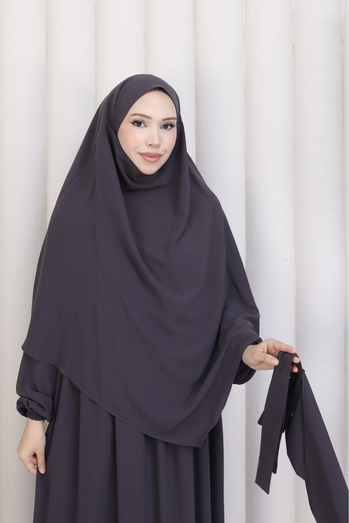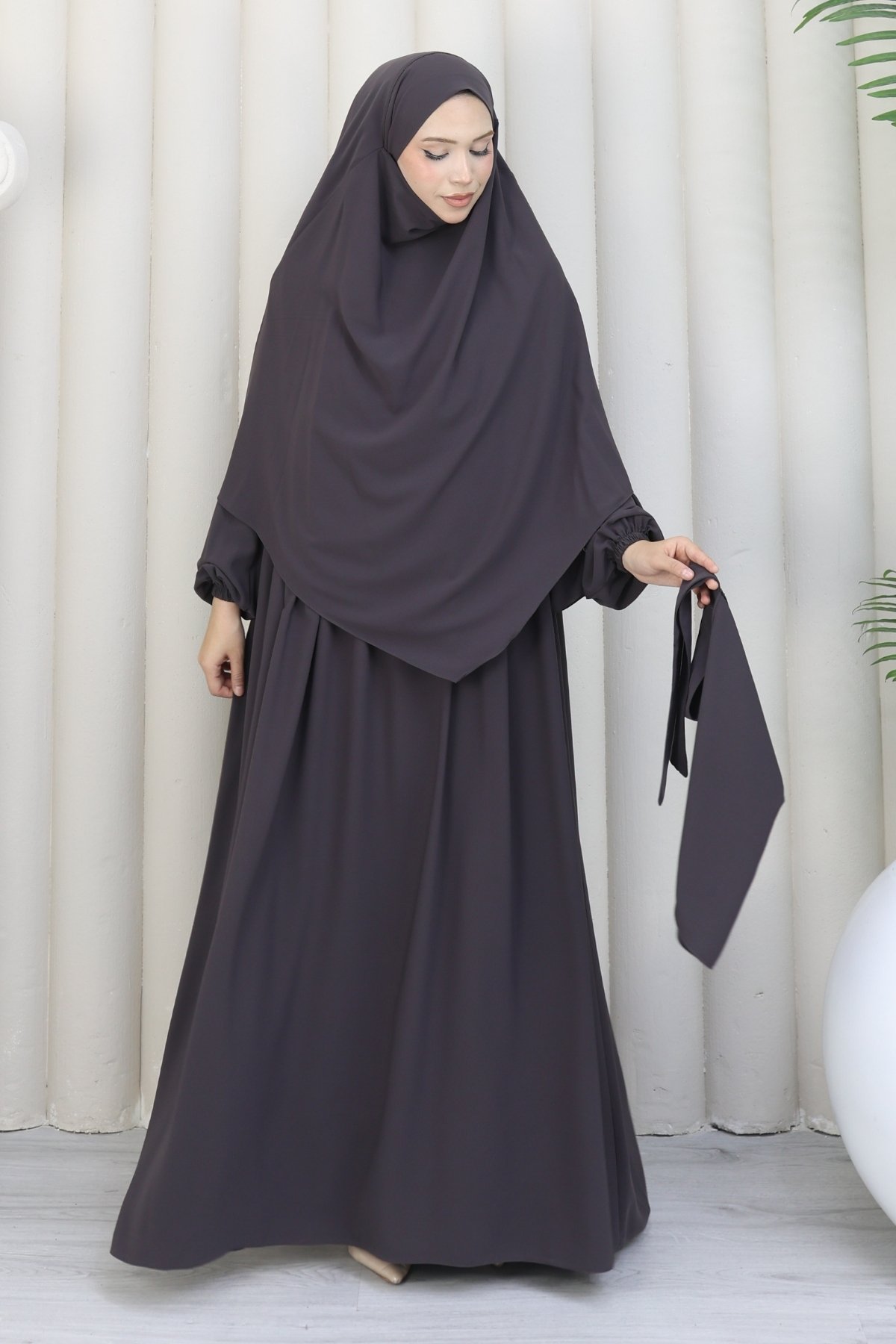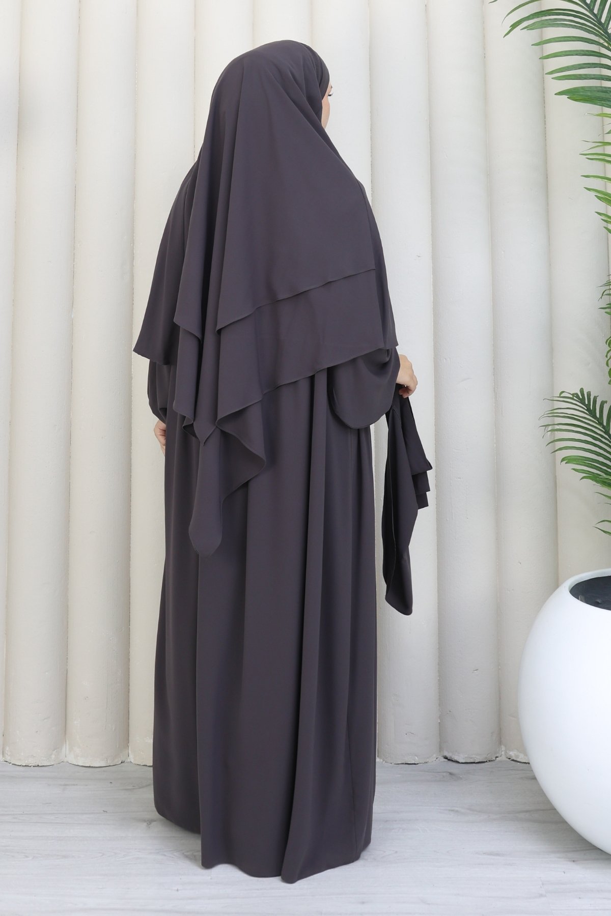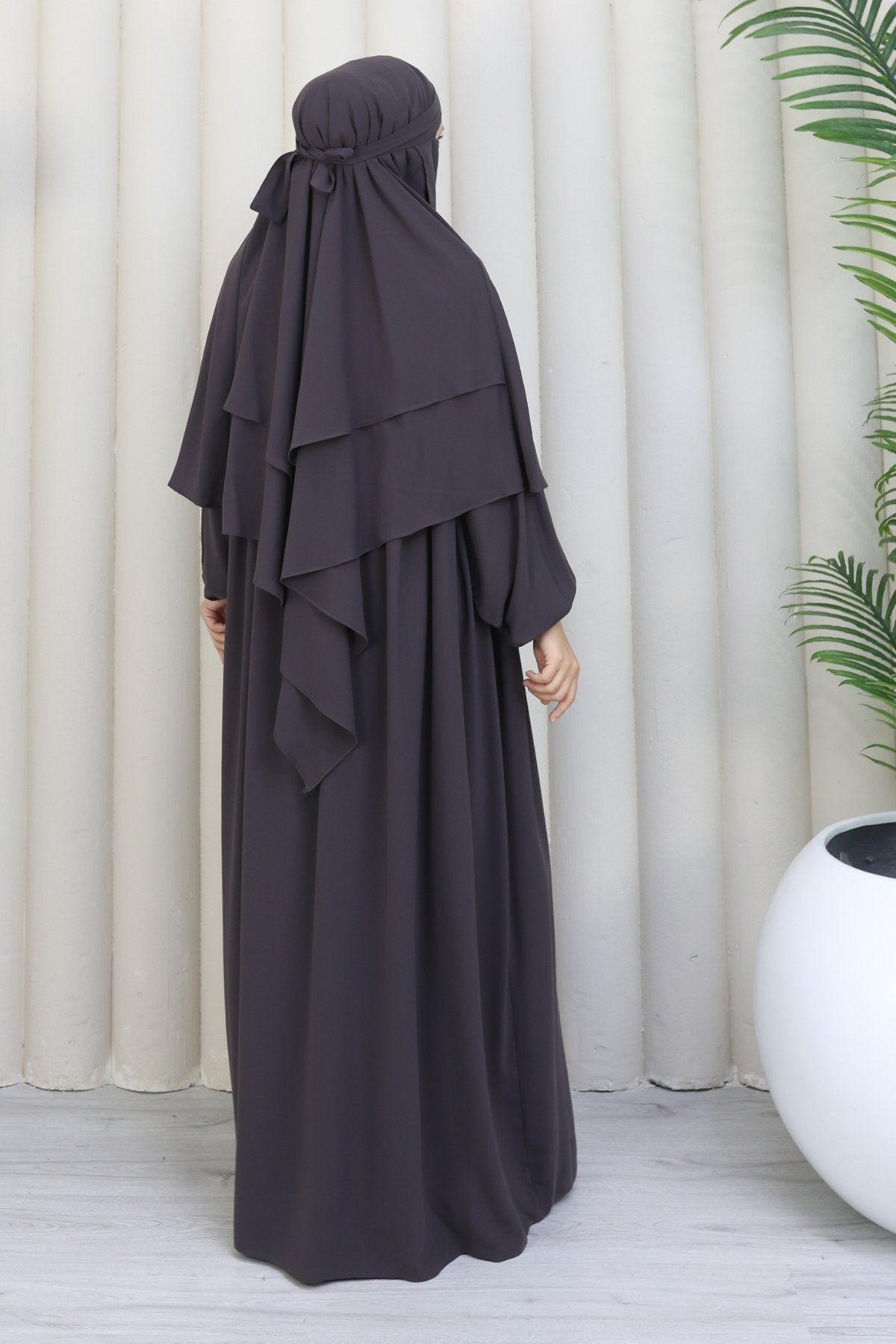 Takımımız; dökümlü duruşuyla göz dolduran bir elbise, omuzlardan zarifçe inen bir sufle ve yüzünüzü yumuşakça saran bir peçe olmak üzere 3 parçadan oluşmaktadır. Birinci sınıf Medine ipeği kumaşından üretilen bu özel tasarım, nefes alabilen hafif dokusu sayesinde en sıcak günlerde dahi asla terletmez ve size ferah bir kullanım sunar. Kesinlikle iç göstermeyen tok ve kaliteli yapısı ile her ortamda güvenle hareket edebilirsiniz.